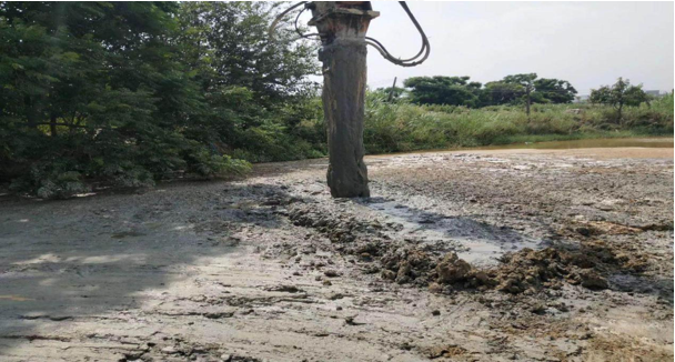 • 广东中达通建设有限公司 • 鱼塘、低洼积水荒地固化新建便道 • 实际工况 • 配比:6%水泥 • 最大深度 2 m
